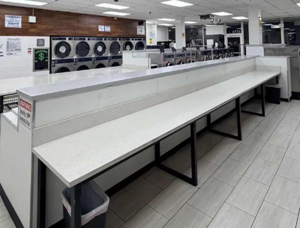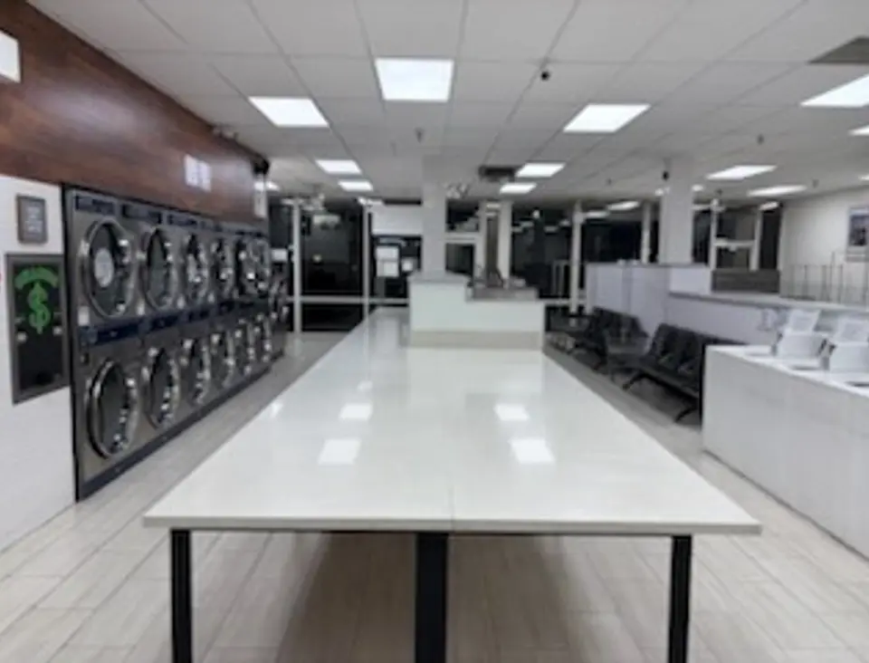 Our customers praise us for providing space to fold laundry. We've got big, clean, generous folding tables so you can take fluff and lay out your garments while folding them.